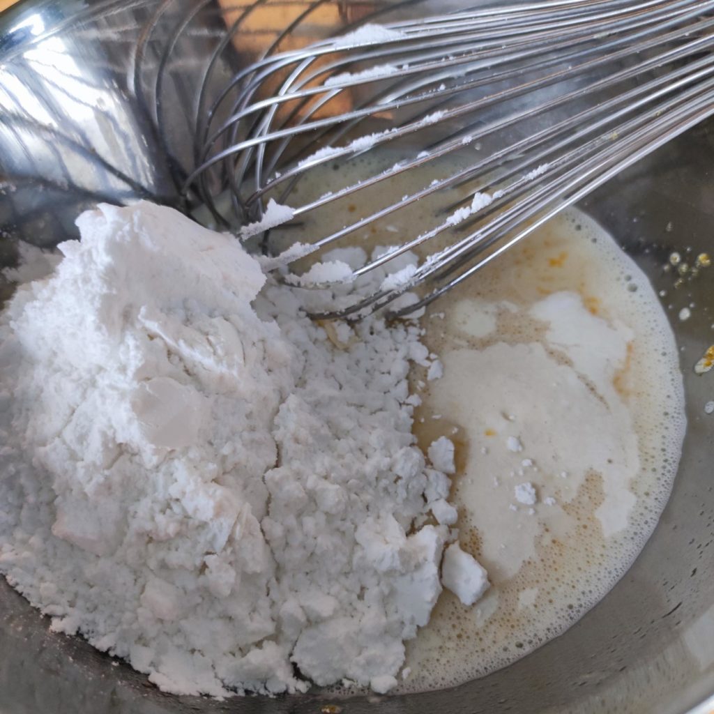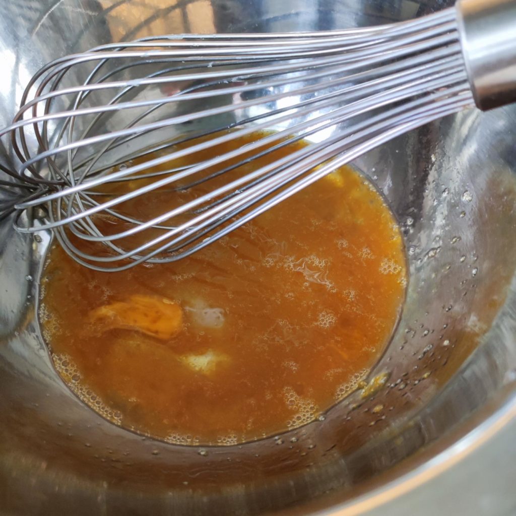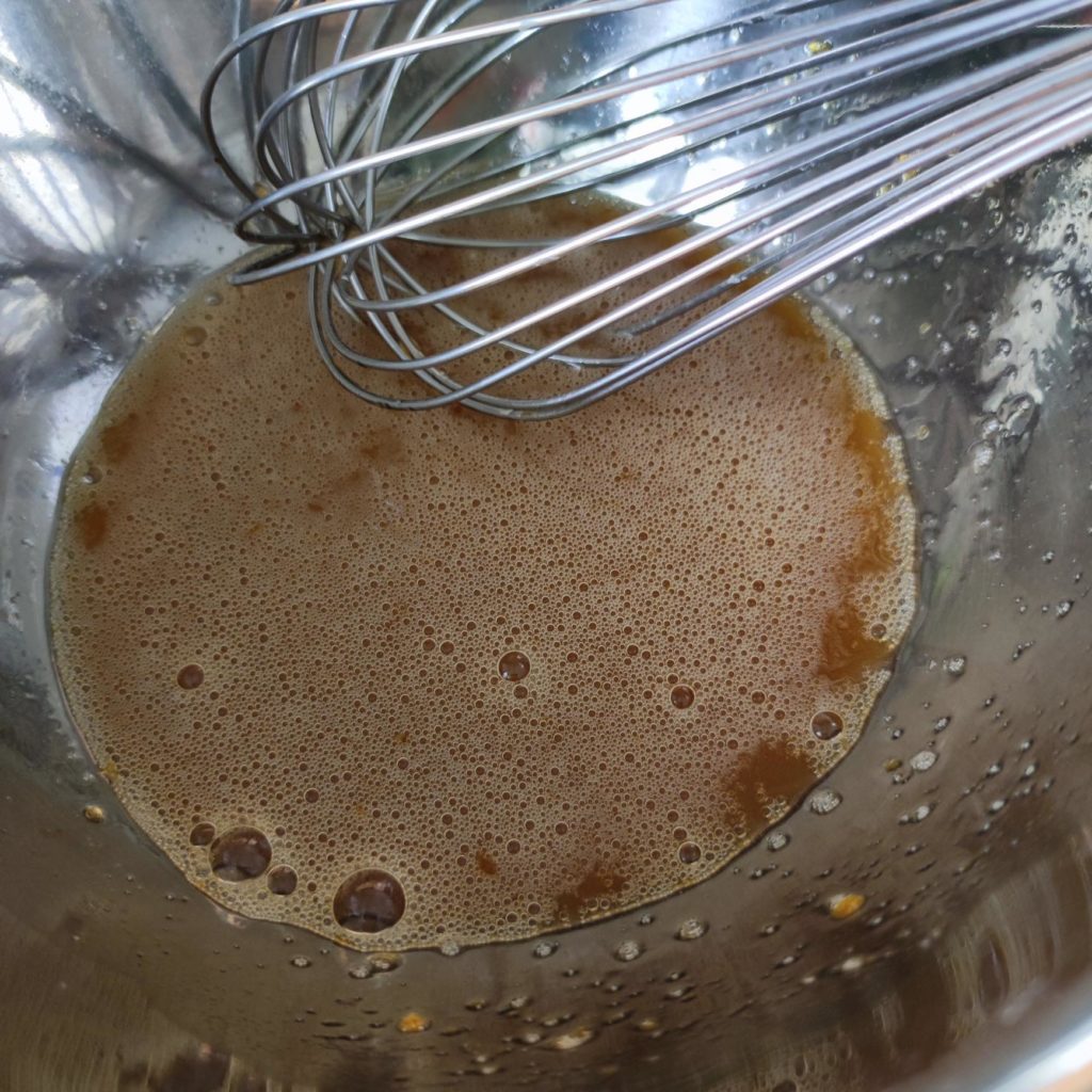 泡立て器で砂糖をすり潰しながら空気を含ませていくイメージで泡立てる