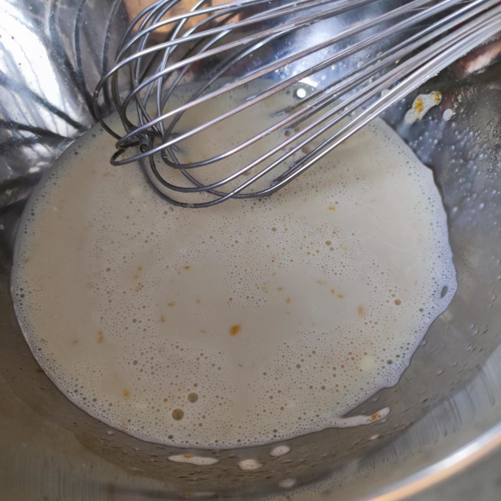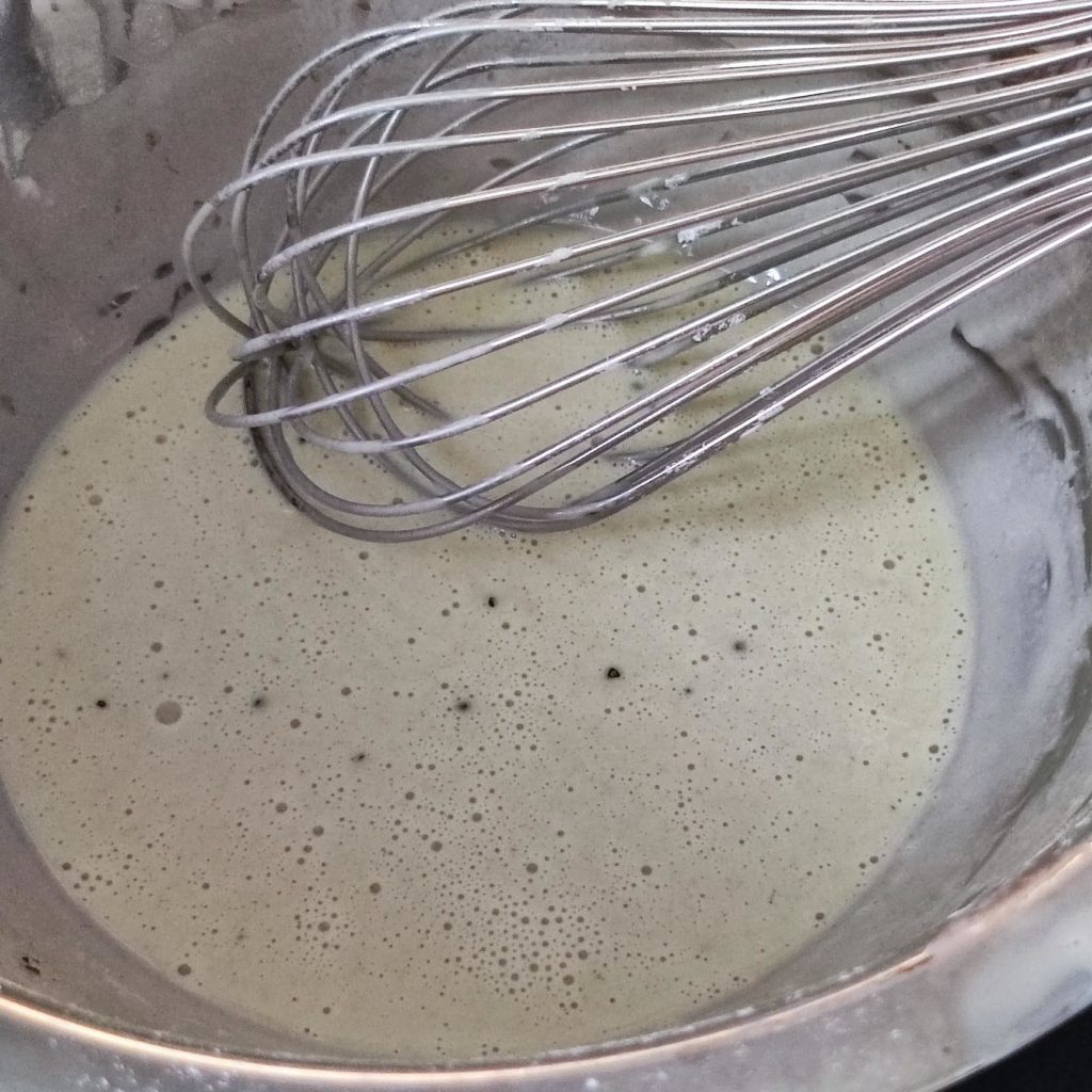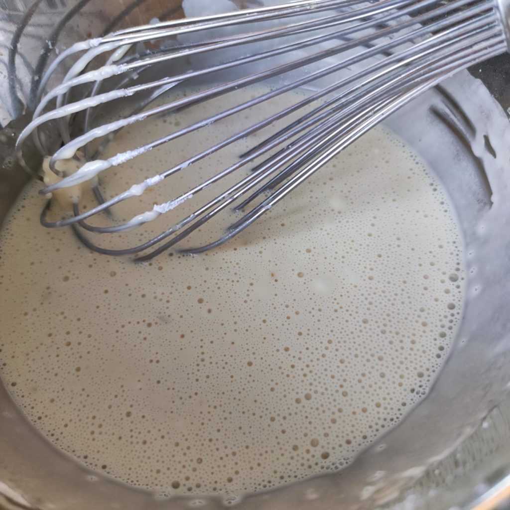 牛乳を加え、泡を潰さない様に泡立て器で静かに混ぜる