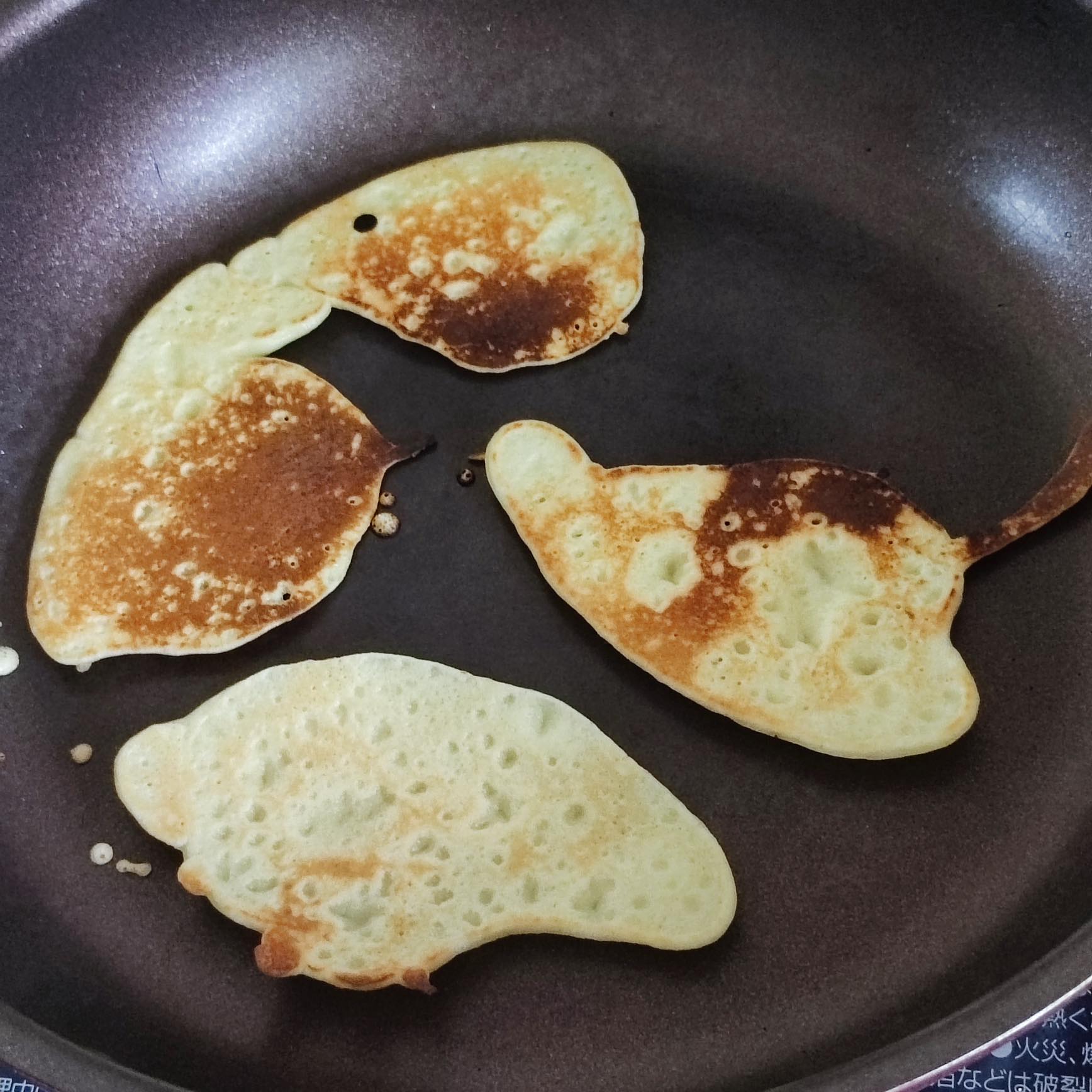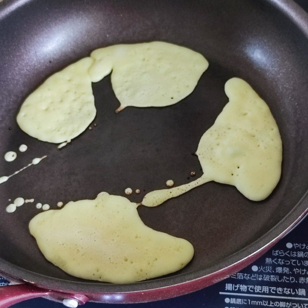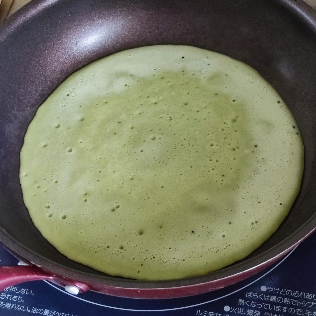 今回は米粉でパンケーキをつくりました 2回目で栄養満点「四葉パウダー」を加えるときれいで美味しく栄養満点のパンケーキになりました